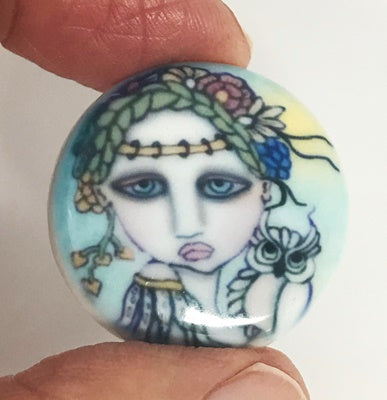 Porcelain cabochon, 27mm about the size of a quarter. Perfect for beading and bead embroidery