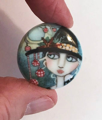 Porcelain cabochon, 27mm about the size of a quarter. Perfect for beading and bead embroidery