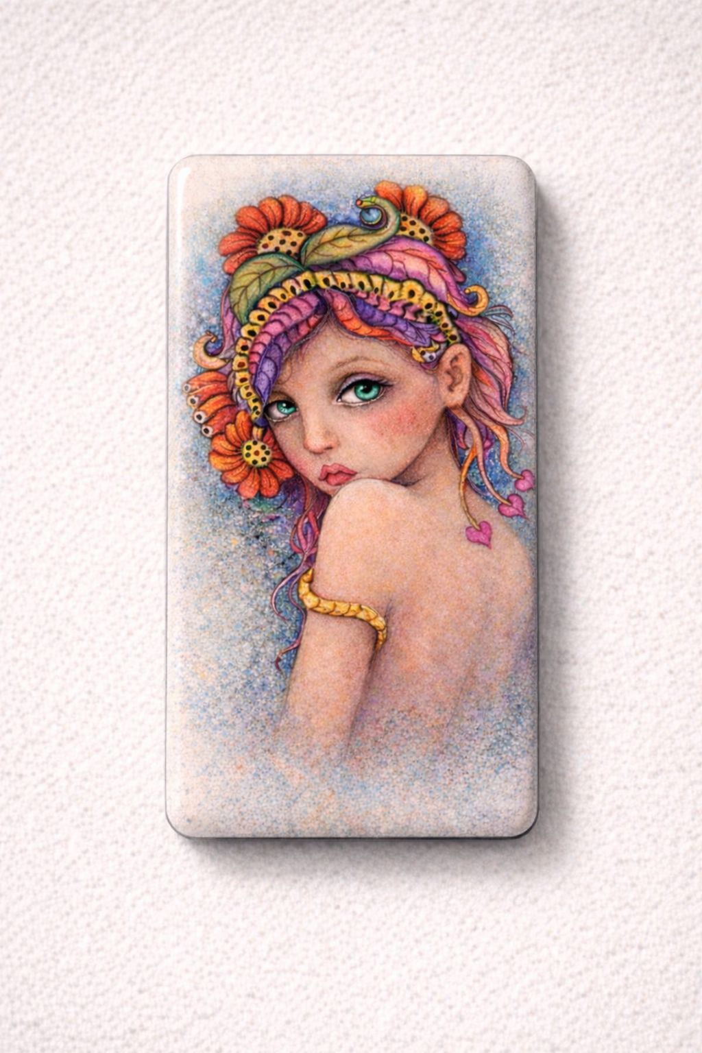 7/8" x 1 7/8" and 5mm thick domino shape with image embedded onto the composite base with a layer of resin to give it a glass like appearance.