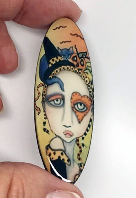 The images are embedded onto the composite base and a thin layer of resin is added to give them a glass like appearance.