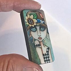 7/8" x 1 7/8" and 5mm thick domino shape with image embedded onto the composite base with a layer of resin to give it a glass like appearance.