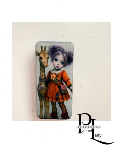 7/8" x 1 7/8" and 5mm thick domino shape with image embedded onto the composite base with a layer of resin to give it a glass like appearance.