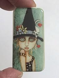 7/8" x 1 7/8" and 5mm thick domino shape with image embedded onto the composite base with a layer of resin to give it a glass like appearance.