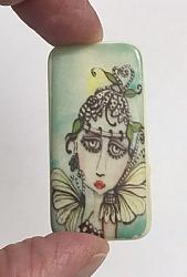 7/8" x 1 7/8" and 5mm thick domino shape with image embedded onto the composite base with a layer of resin to give it a glass like appearance.