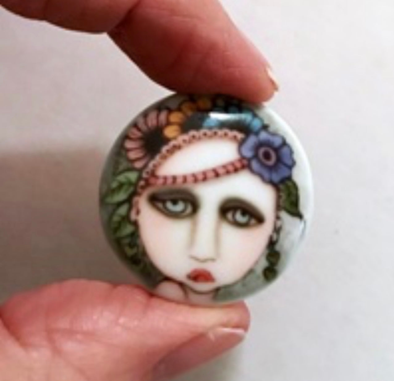 Porcelain cabochon, 27mm about the size of a quarter. Perfect for beading and bead embroidery