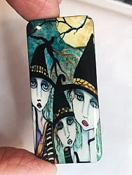 7/8" x 1 7/8" and 5mm thick domino shape with image embedded onto the composite base with a layer of resin to give it a glass like appearance.
